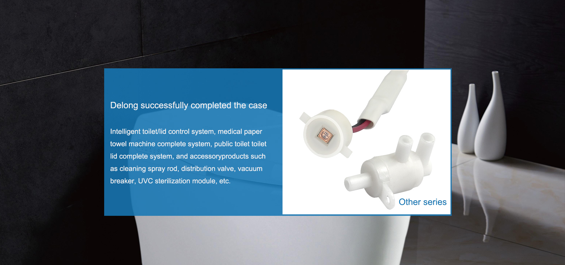 Delong Electronic brings together industry experts, focuses on technology, excels in innovation, and offers a thorough and exceptional range of products. The primary products consist of cleaning spray rods, multi-water distribution valves, vacuum breaking valves, UVC sterilization modules, silicone tubes, and other related accessories.